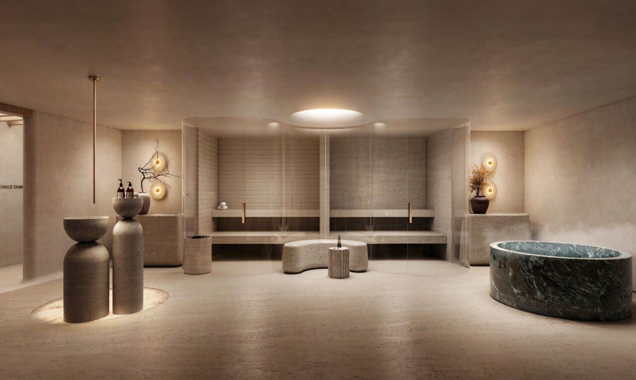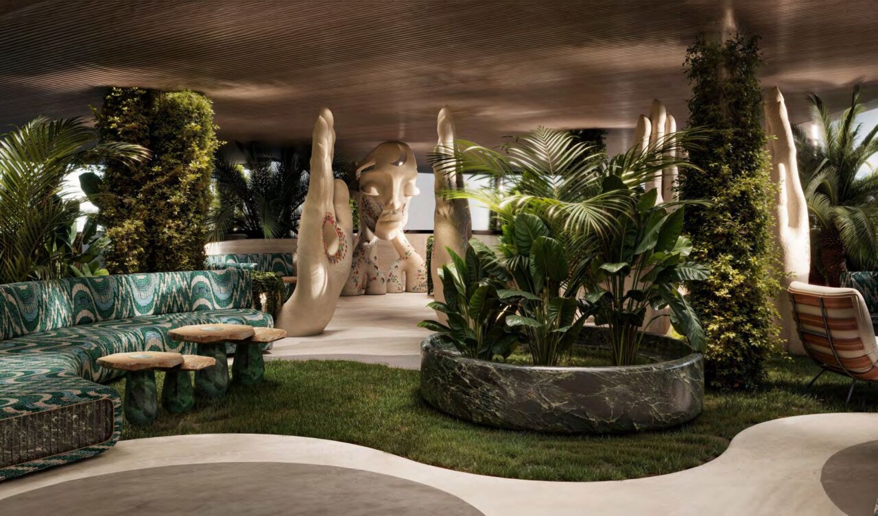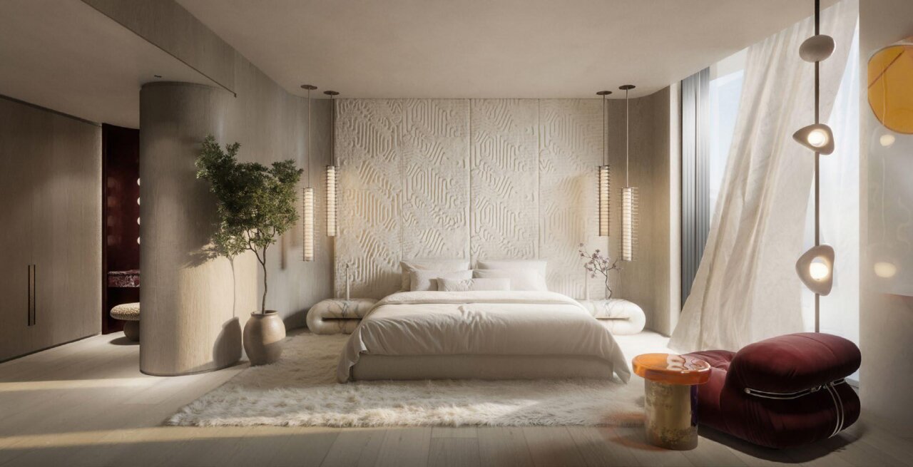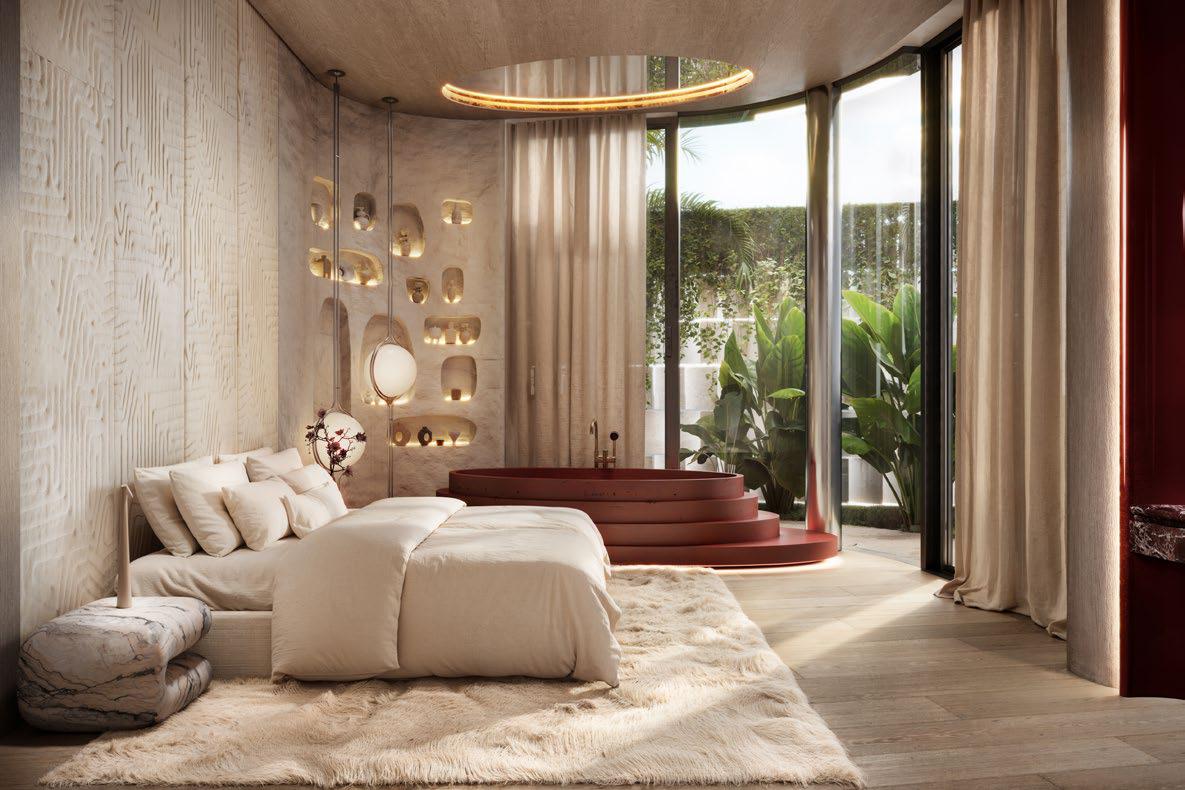 In the renderings, the residences open up to the exterior with large furnished terraces, shaded areas, abundant vegetation and private jacuzzis or pools integrated into the design, reinforcing the concept of urban sanctuary that the developer summarizes under the slogan «The Ultimate Sanctuary». The sensation is that of a five-star hotel transformed into a home, with spaces designed for living both inside and outside.