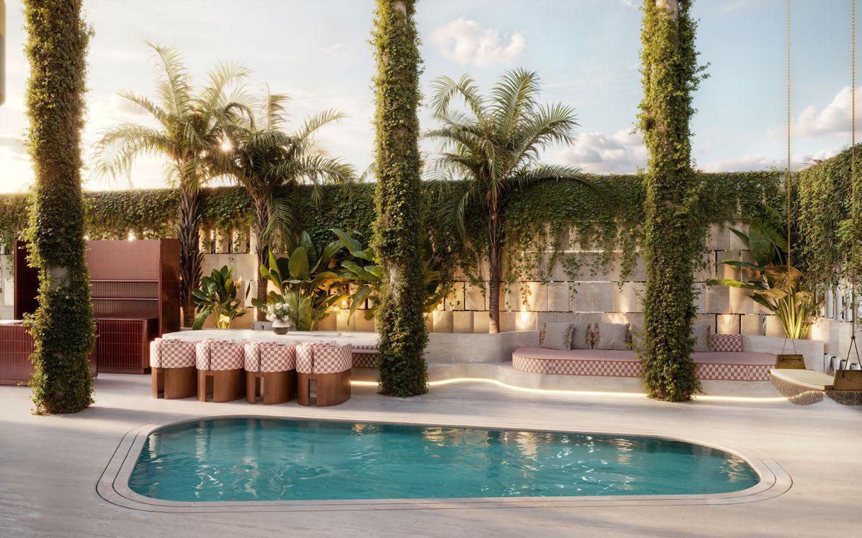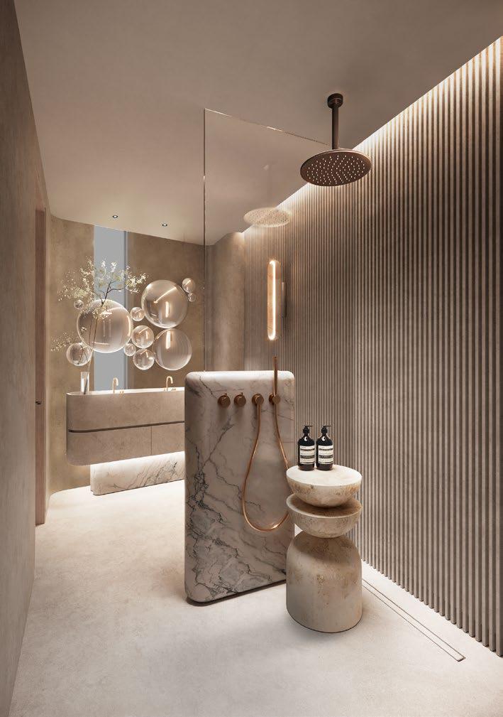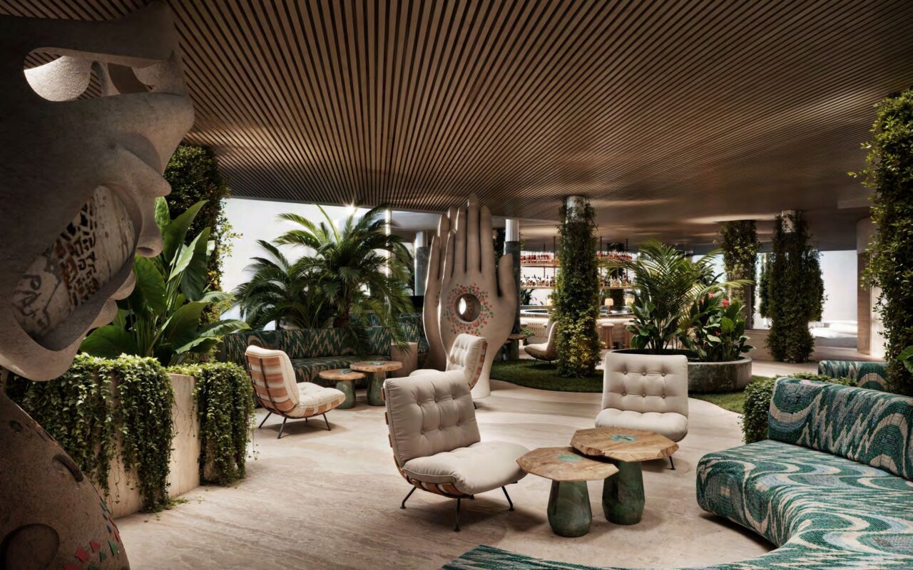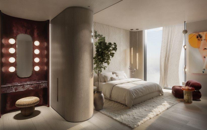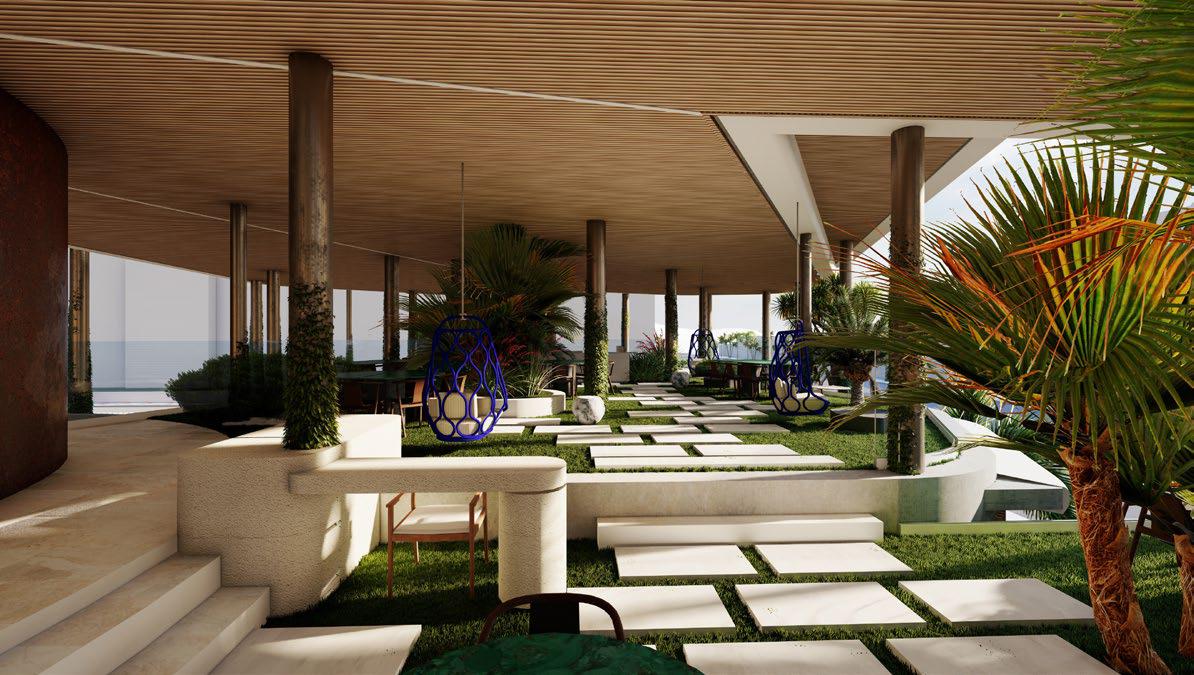 In the renderings, the residences open up to the exterior with large furnished terraces, shaded areas, abundant vegetation and private jacuzzis or pools integrated into the design, reinforcing the concept of urban sanctuary that the developer summarizes under the slogan «The Ultimate Sanctuary». The sensation is that of a five-star hotel transformed into a home, with spaces designed for living both inside and outside.