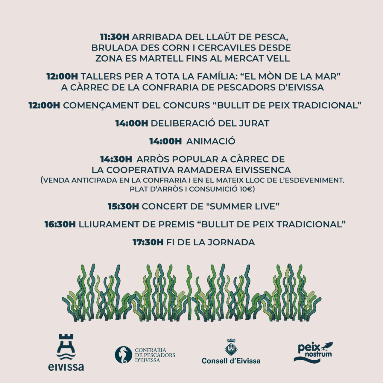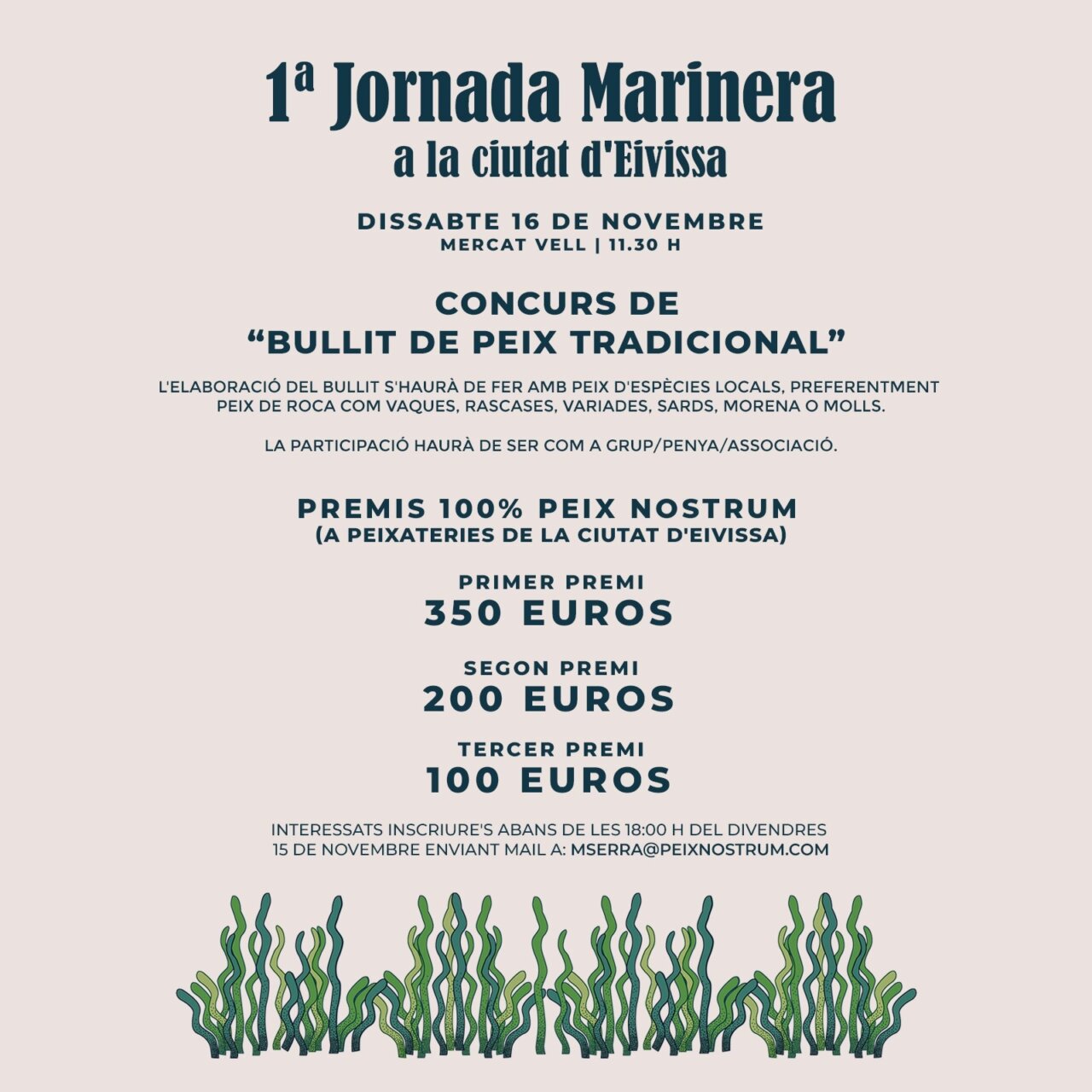 The Ibiza Town Hall encourages citizens to participate in the Bullit de Peix Nostrum contest, which will be held this Saturday, November 16, at the Mercat Vell, as part of the first Seafood Fair. Gastronomy will be a key aspect of the day as people who sign up will be able to participate in the Gastronomic Contest to prepare a fish stew with a product of the island. Participation will be as a group, peña or association and applications can be made until November 15 by writing to mserra@peixnostrum.com or info@peixnostrum.com. The use of local species of fish will be mandatory for this contest, preferably rock fish as well as cows, red hair, varied, bream, moray eels or docks. The participants will have from 12:00 to 14:00 hours to cook their elaborations that will be qualified by a jury. At 16:30 hours will be the awards ceremony where the three best dishes will receive a voucher card to consume in the fish market Peix Nostrum valued at 350 euros for the winner, 200 euros second place and 100 euros in the third. It should be noted that people who go characterized with marine elements will receive a surprise gift.