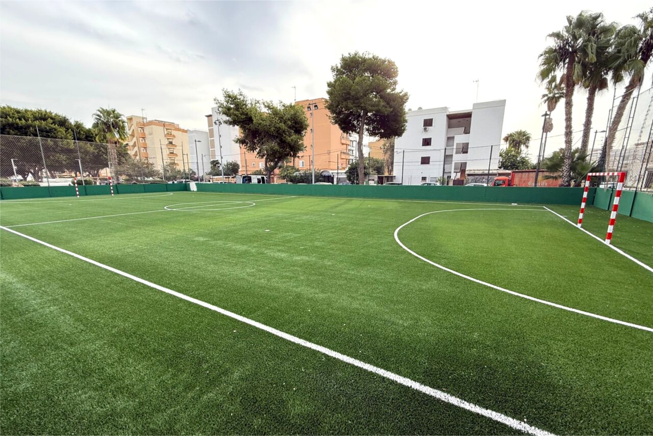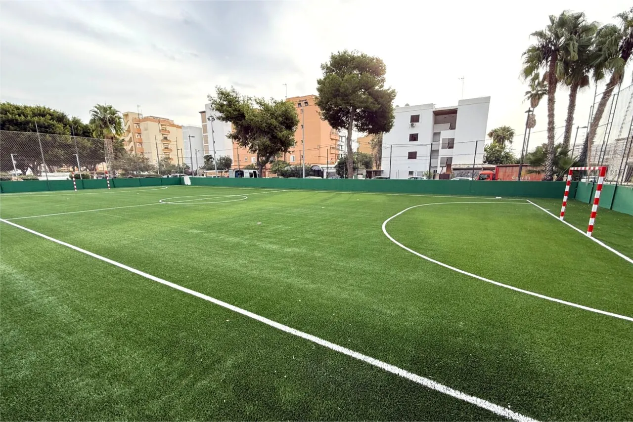 The complete renovation of the Platja d’en Bossa sports court, at a cost of 86,265 euros, responds to a historical demand of the neighbors and represents a significant improvement in safety and efficiency. The project, promoted by the Town Council of Eivissa and Red Eléctrica Española, includes the complete replacement of the artificial turf, the renovation of the pavement, the repair of the perimeter enclosure and the installation of new lights capable of reducing energy consumption by up to 60%.