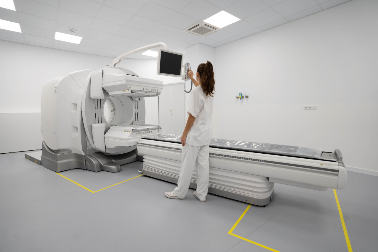 The procedure, performed at the Policlinica Group, begins hours before surgery. The patient receives a small dose of radiopharmaceutical and undergoes a SPECT-CT study that generates a three-dimensional map of the neck, where the adenoma is clearly identified. During the operation, the surgical team uses a gamma probe to confirm the exact location and guide the incision with total precision.