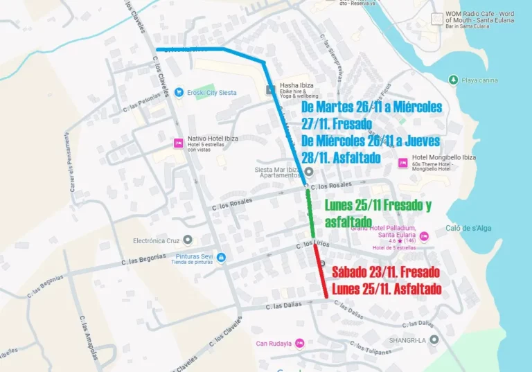 The Santa Eulària Town Hall has announced partial traffic and parking restrictions in Margalides street, in the area of es Puig d’en Fita/Siesta, from tomorrow Saturday until next Thursday, November 28th. These measures will be implemented on the occasion of the asphalting works, which aim to improve safety in this important road of the town. The Consistory requests the cooperation of the citizens to respect the provisional signaling and follow the indications of the personnel on site, in order to reduce as much as possible the inconvenience caused by the interventions.