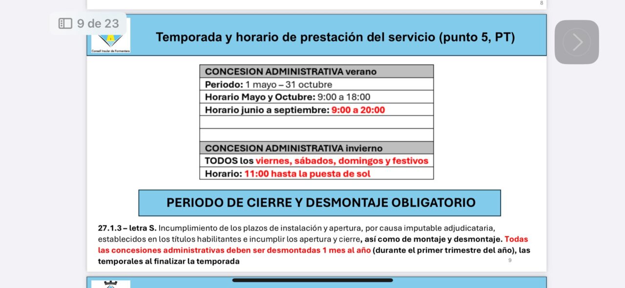 “The seasonal services may have an authorization for a maximum period of four years, although the facilities must be dismantled after the end of each of the seasons included in the term of duration of the authorization,” states the regulation. Then, from the insular administration they stumble over their own lie when they argue that “the rule is applicable throughout the territory, so the kiosks of other communities should also be dismantled in the same periods as they do in the Balearic Islands in accordance with the Resolution of Concession”. Although the concessionary title of Costas establishes that “the administrative concessions must be dismantled one month a year (during the first quarter of the year)“, from a municipal allegation presented in March 2023 it was established that “the annual obligation to dismantle is reduced to the period of one monthbetween January 15 and February 15 of each year“. The Consell set this condition to harmonize two contradictory principles: the obligation to dismantle one month during the first quarter established by Costas and to have open all year round to deseasonalize, a condition also set in the tender. This was also clarified by the legal-technical report of the Consell de Formentera issued last December 20 and has been ignored by Sa Unió.
