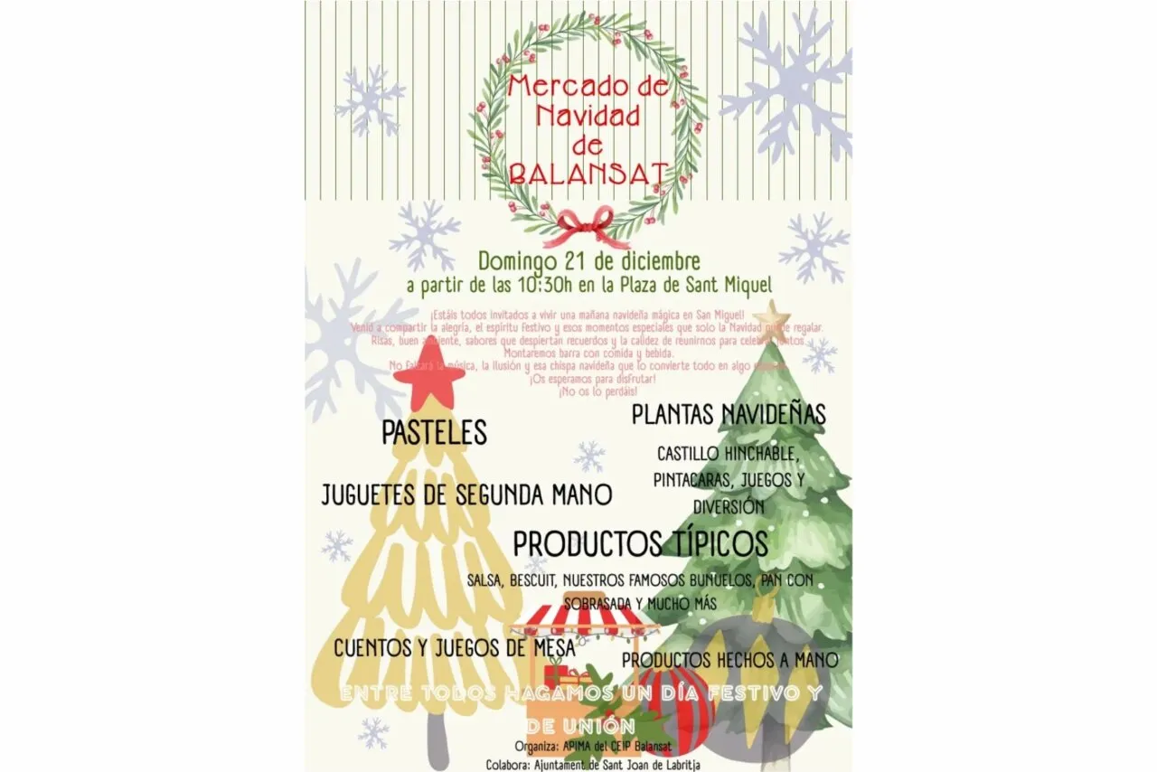 The Balansat Christmas Market is organized by the APIMA of CEIP Balansat, with the collaboration of the Ajuntament de Sant Joan de Labritja, and is consolidated as one of the most beloved Christmas events in the municipality, where tradition and neighborhood participation welcome the holidays.