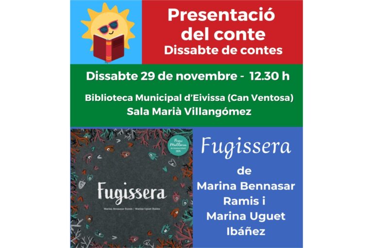 On Saturday, November 29th at 12:30 pm, the Municipal Library of Eivissa (Can Ventosa) will host the presentation of the short story Fugisserawritten by Marina Bennasar Ramis and Marina Uguet Ibáñez, winner of the Premi Mallorca de Literatura Infantil 2024.