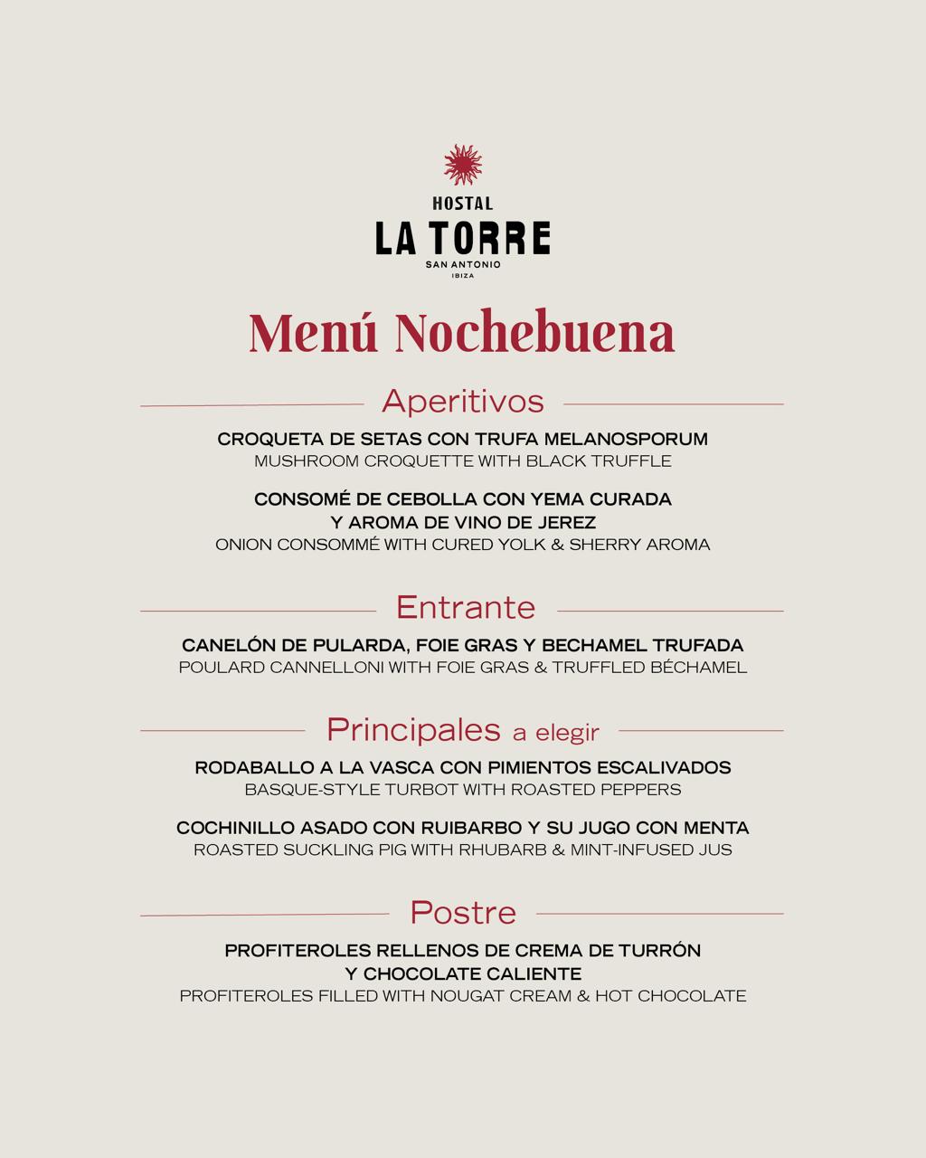 Once again this year, Hostal La Torre has designed special menus for Christmas Eve and New Year’s Eve 2025 dinners. Christmas Eve and New Year’s Eve 2025The two evenings are designed to turn both into a complete gastronomic experience. The proposals include appetizer, starter, main dish and dessert, in addition to the traditional lucky grapes and christmas candy.