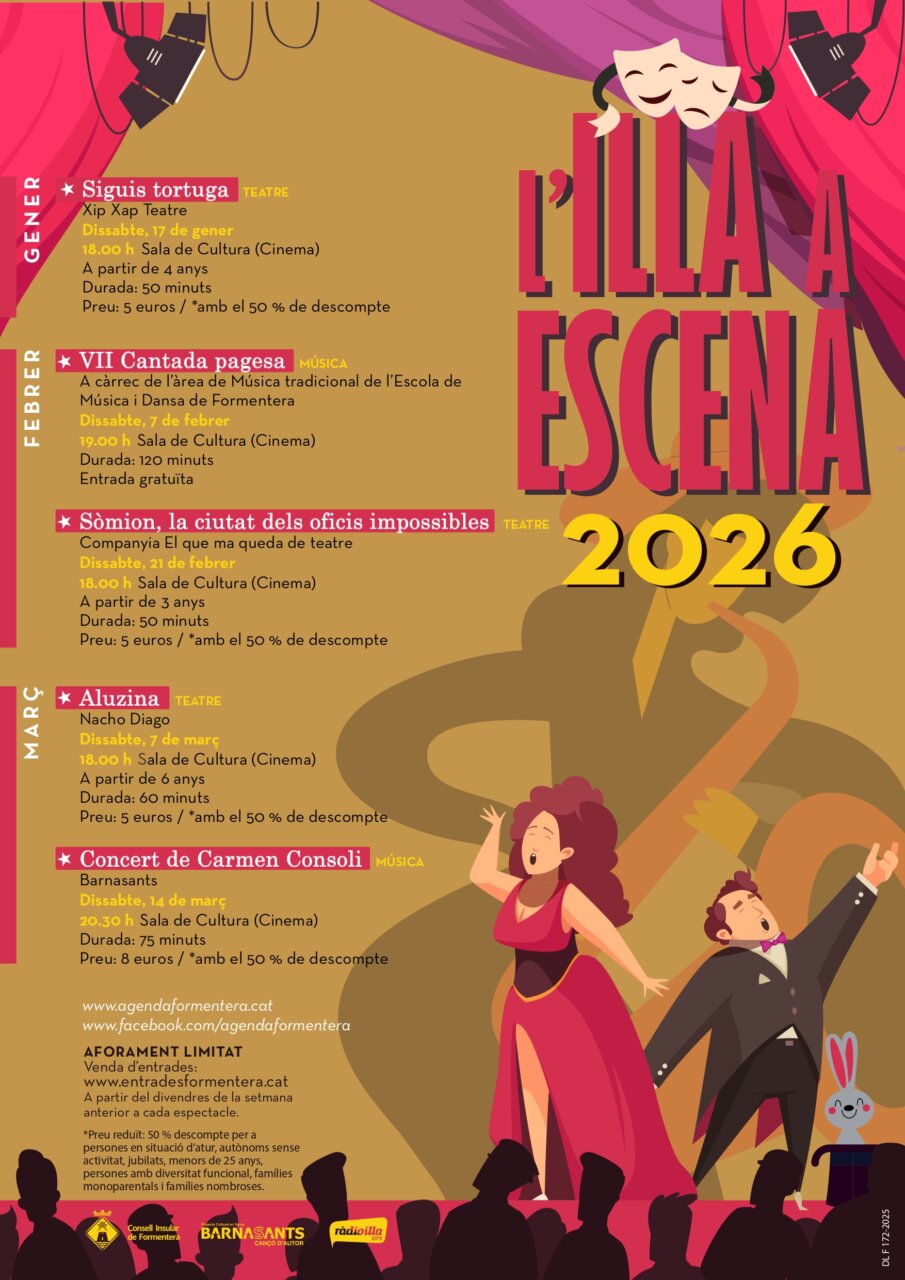The Consell Insular de Formentera has presented a new edition of Illa a Escena, the cultural program that will once again turn the Sala de Cultura (Cinema) into a meeting point for the performing arts and music between January and March 2026.