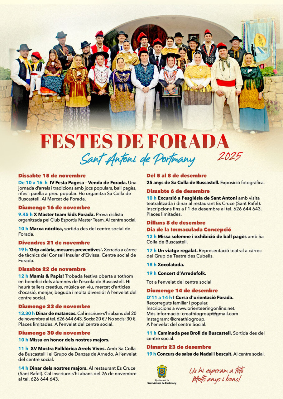 On November 15, the IV Festa Pagesa – Venda de Forada will be held, a day focused on the roots of the Ibizan countryside that will include traditional games, ball pagès, raffles and a popular paella organized by Sa Colla de Buscastell.