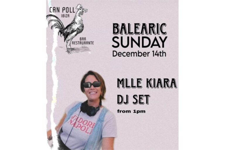 El bar restaurante Can Poll celebra una nueva edición de su Balearic Sunday con un DJ set de Mlle Kiara, que pondrá la banda sonora a la jornada desde la hora de la comida. Una propuesta relajada y festiva para disfrutar de ritmos baleáricos en un ambiente cercano y al aire libre en la carretera de Sant Carles.