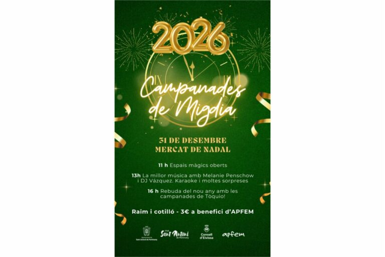 Sant Antoni de Portmany celebrará las Campanadas de Migjorn el martes 31 de diciembre, dentro del Mercat de Nadal, con una jornada festiva pensada para todos los públicos.
