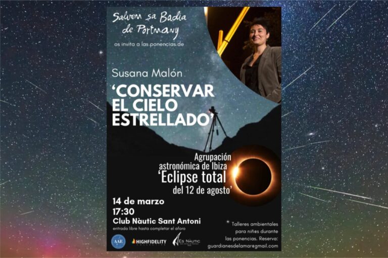 También intervendrán Chus Palomeque y Pedro Pérez, de la Agrupación Astronómica de Eivissa, quienes ofrecerán una charla sobre el eclipse solar total que tendrá lugar este verano.