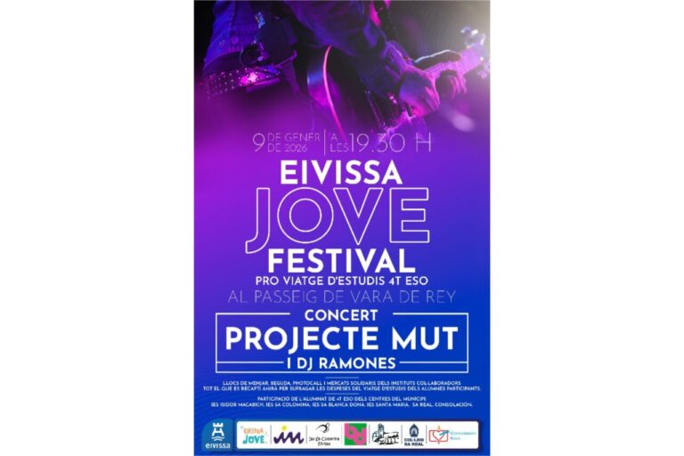 El viernes 9 de enero de 2026, Ibiza acoge una nueva edición del Eivissa Jove Festival, un concierto solidario protagonizado por Projecte Mut dentro de la programación de Eivissa, Ciutat del Nadal. El evento se celebrará a partir de las 19:30 horas en el envelado de Vara de Rey.