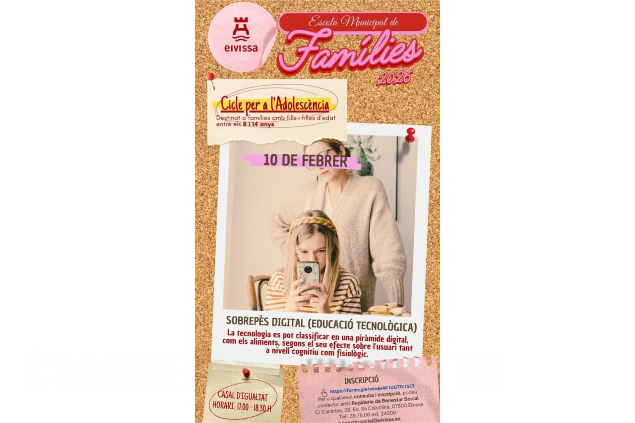 El Ayuntamiento de Eivissa ofrece una nueva sesión de la Escuela Municipal de Familias 2026, un programa gratuito dirigido a madres y padres con hijos e hijas de entre 3 y 14 años.