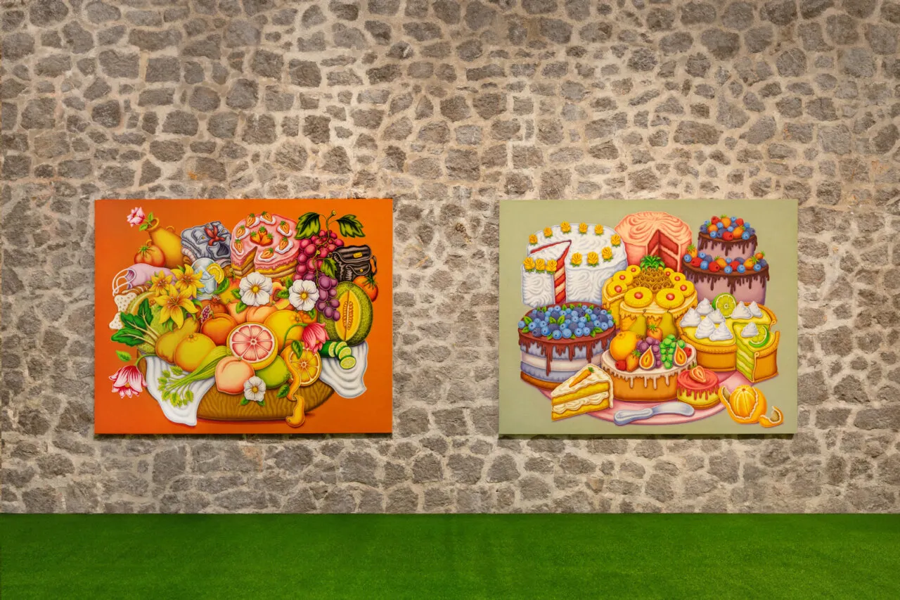 La muestra reúne quince pinturas de gran formato, concebidas para el emblemático edificio de piedra de La Nave Salinas. Inspirado en las vanitas del siglo XVII, el artista propone un giro hacia el “memento vivere”, invitando a disfrutar del presente a través de escenas vibrantes y simbólicas.