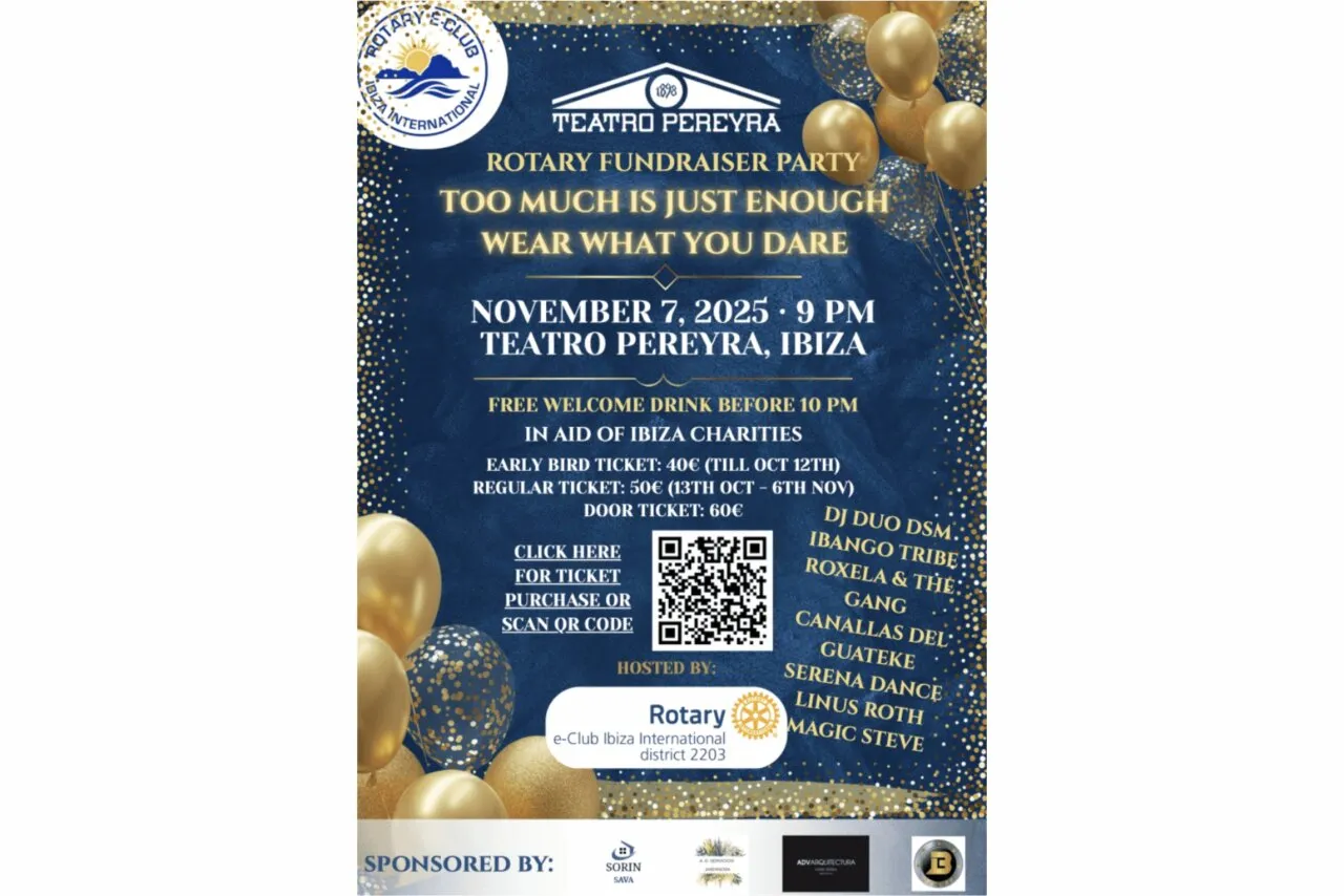 El Rotary e-Club Ibiza International celebra su gran fiesta de recaudación de fondos bajo el lema “Too Much Is Just Enough – Wear What You Dare”, una noche en la que el glamour, la música y la solidaridad se unen por una buena causa.