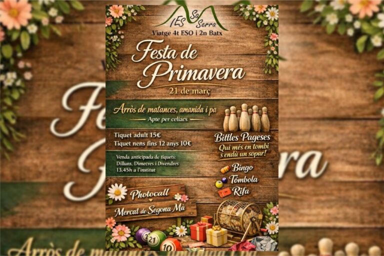 El IES Sa Serra celebra su Fiesta de Primavera, una jornada pensada para disfrutar en familia con gastronomía tradicional, juegos y actividades para todas las edades.