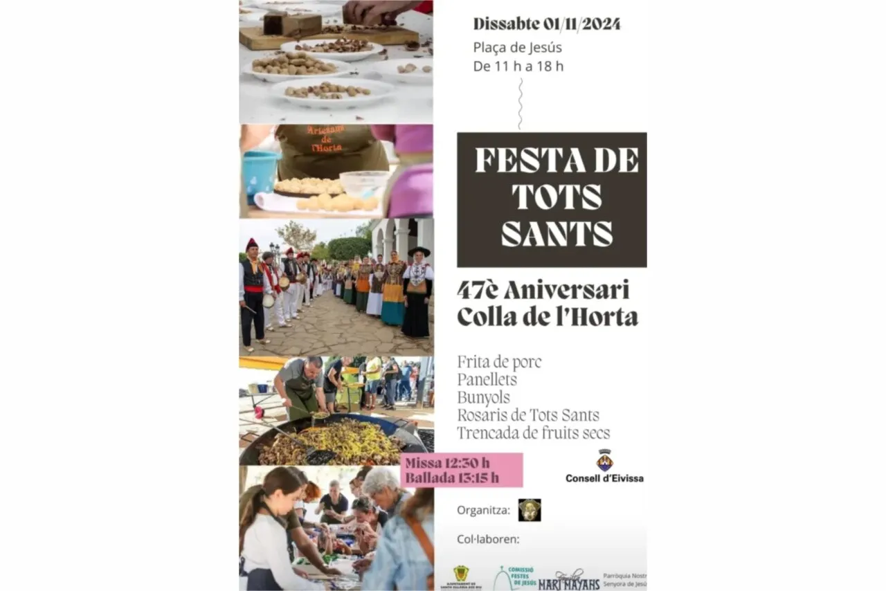 La Festa de Tots Sants regresa a la Plaza de Jesús en una jornada llena de tradición, gastronomía y música popular. Organizada por Sa Colla de l’Horta, con la colaboración del Ayuntamiento de Santa Eulalia y la Comisión de Fiestas de Jesús, esta edición será especialmente significativa al celebrarse el 47º aniversario de Sa Colla de l’Horta.