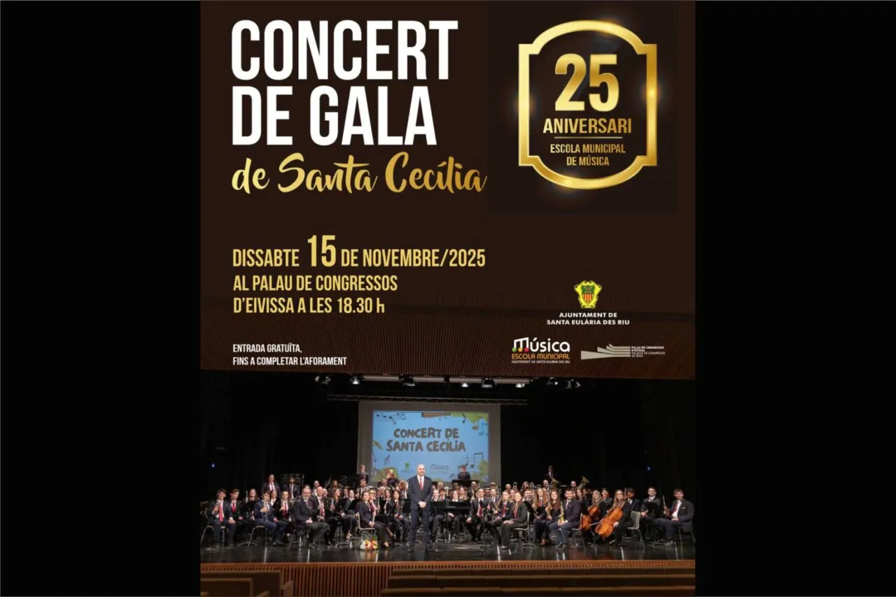 La Escuela Municipal de Música de Santa Eulària celebra su 25º aniversario con una gala muy especial que tendrá lugar el sábado 15 de noviembre a las 18:30 horas en el Palacio de Congresos de Ibiza. El evento, enmarcado en el tradicional concierto de Santa Cecilia, reunirá a más de 80 músicos de distintas edades y servirá para presentar el disco conmemorativo del aniversario, grabado durante este año.