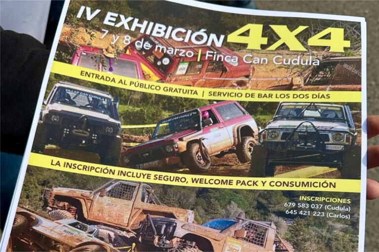 Sant Llorenç de Balàfia acoge la IV Exhibición 4×4 los días 7 y 8 de marzo de 2026 en la Finca Can Cudula, con entrada libre para todos los públicos. La cita reunirá a más de 20 participantes con buggies y vehículos 4×4 de distintas categorías: de serie, mejorados y extremos, ofreciendo un espectáculo de técnica, destreza y adrenalina en un entorno controlado.
