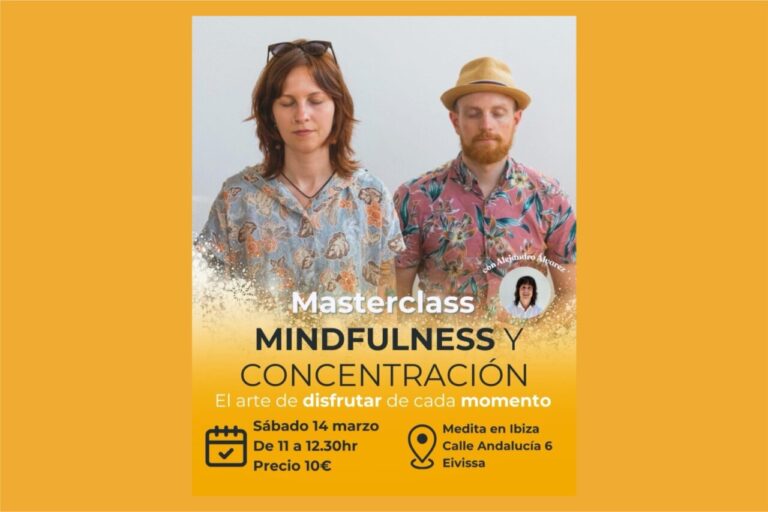 El sábado 14 de marzo de 2026, de 11:00 a 12:30 horas, el espacio Medita en Ibiza acogerá la masterclass “Mindfulness y concentración: el arte de disfrutar de cada momento”, una sesión pensada para aprender a enfocar la atención y cultivar la calma en la vida cotidiana.