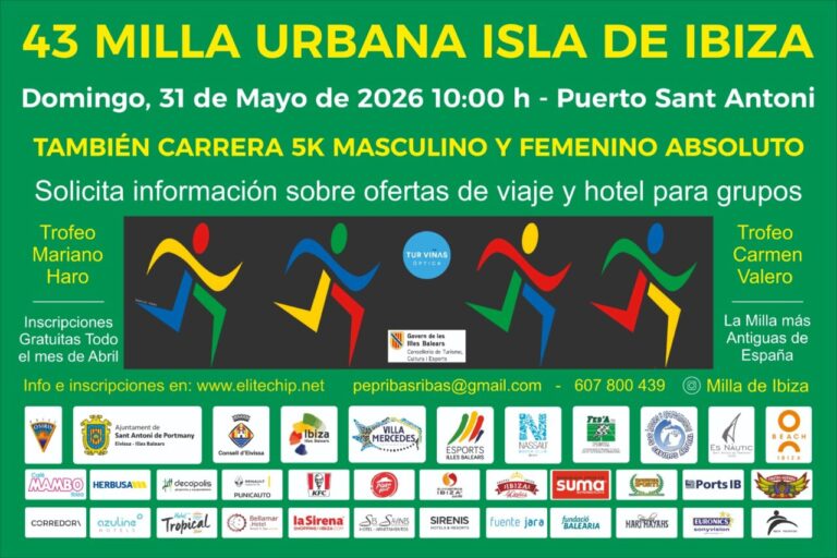 La 43ª edición de la Milla Urbana Isla de Ibiza se celebrará en el puerto de Sant Antoni, consolidándose como una de las pruebas más emblemáticas y veteranas del atletismo en España.