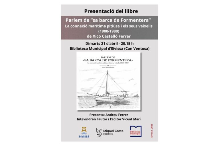 El acto contará con la presentación a cargo de Andreu Ferrer y la participación del autor junto al editor Vicent Marí. La obra repasa la historia de la conexión marítima pitiusa y la evolución de sus embarcaciones a lo largo del siglo XX, poniendo en valor el patrimonio marítimo de Ibiza y Formentera.
