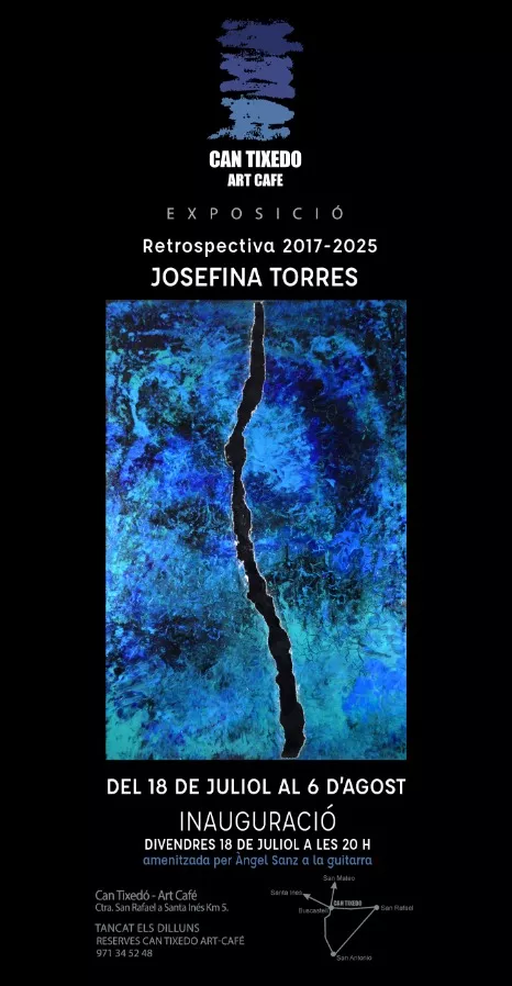 El próximo 18 de julio, el emblemático Can Tixedó Art Café acogerá la inauguración de Retrospectiva 2017-2025, una muestra que traza un recorrido íntimo y valiente por la obra de los últimos ocho años de la pintora ibicenca Josefina Torres. La cita se ha convertido en un pequeño ritual para la artista y el espacio: en 2016, Torres ya presentó una revisión de su trabajo de la etapa previa, también abarcando ocho años, en esta misma galería situada en Buscastell, Sant Antoni.