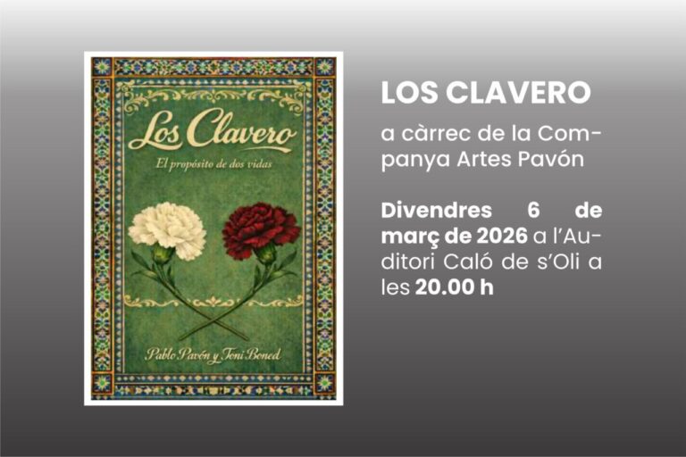 El viernes 6 de marzo de 2026 a las 20:00 horas, el Auditori Caló de s’Oli, acogerá la representación de “Los Clavero”, a cargo de la Companyia Artes Pavón, dentro de la Temporada de Teatre Amateur organizada por el Consell Insular d’Eivissa, a través del Departamento de Cultura, Educación y Patrimonio.