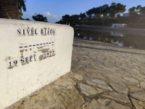 Un vecino muestra la marca del agua en el río de Santa Eulària y compara la riada de 1977 con la tormenta Ex-Gabrielle.