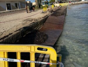 Los daños afectan a un tramo de unos veinte metros del paseo peatonal, que ha sido precintado por el Ayuntamiento de Ibiza por motivos de seguridad tras los últimos episodios de mal tiempo.
