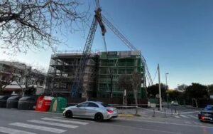La estructura quedó apoyada sobre un edificio en obras y la Policía Local acordonó la zona de forma preventiva.