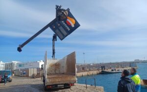 La recuperación del cartel arrastrado al mar por el último temporal se convierte en la imagen más llamativa de la jornada “Sant Antoni Net a Fons”