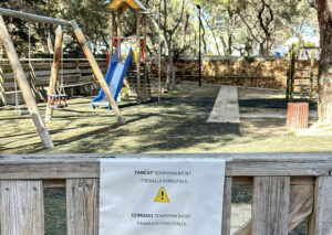 El Consell de Formentera mantiene clausurado el recinto como medida preventiva por la presencia de orugas y el aumento del riesgo de caída de ramas tras los fuertes vientos.