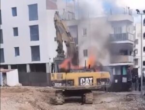 Vecinos grabaron el momento en que una máquina ardía en plena obra.