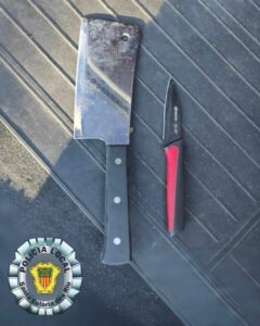 La mujer, que portaba dos cuchillos —uno tipo carnicero—, fue reducida por la Policía Local de Santa Eulària con apoyo de la Guardia Civil tras intentar atacar a los agentes.