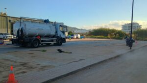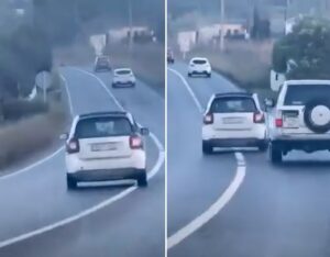 La peligrosa maniobra fue grabada este miércoles a las 9.30 horas por los ocupantes de un coche que circulaba detrás en la zona de Las Dalias.