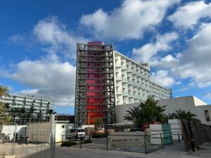 La pantalla ya ha sido desmontada y no volverá a ser instalada en la fachada del establecimiento hotelero de Playa den Bossa