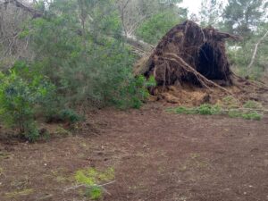 Una vecina de la zona rural compartió fotos de grandes troncos en el suelo y aseguró que el viento tumbó diez ejemplares.