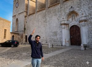 El creador de contenido Lucas Lavall grabó en Dalt Vila uno de sus vídeos humorísticos de “presupuestos de obra”, un formato viral en el que analiza edificios como si fueran construcciones que necesitan una reforma urgente.