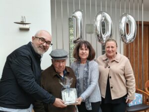 El alcalde Vicent Roig y la concejala Marilina Serra le entregaron una placa conmemorativa en reconocimiento a su trayectoria como vecino del municipio.
