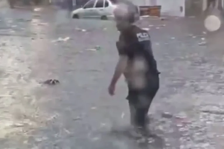 En medio de las inundaciones que azotan a gran parte de la Ciudad de Buenos Aires, Argentina, una agente de policía tuvo un conmovedor gesto que fue captado en video y se hizo viral.