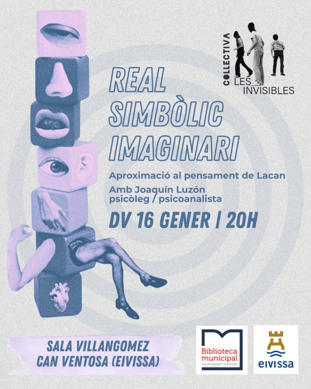 Biblioteca Can Ventosa Avinguda d’Ignasi Wallis, 26, Ibiza, Islas Baleares, SpainFecha: Viernes 16 de enero Hora: 20.00 horas Lugar: Sala Villangómez – Can Ventosa (Eivissa) “Real, simbólico, imaginario” es una charla divulgativa que propone una aproximación al pensamiento del psicoanalista Jacques Lacan, uno de los autores más influyentes del siglo XX en los campos del psicoanálisis, la filosofía y la teoría cultural. La actividad está […]