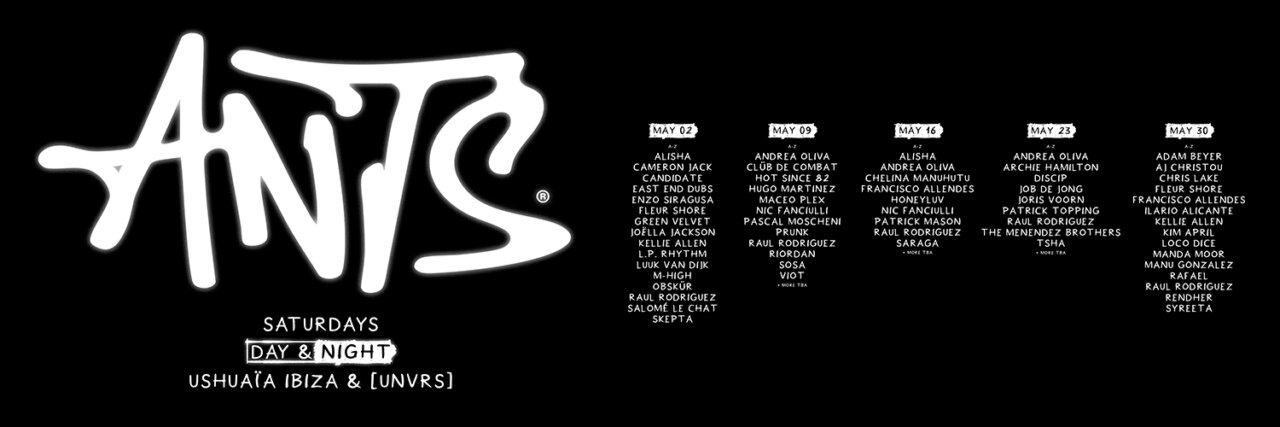 El viaje comienza en Ushuaïa Ibiza, hogar histórico de ANTS en la isla, con una producción renovada y reducida a lo esencial. Al caer el sol, la experiencia se traslada a [UNVRS], donde el pulso se intensifica hasta el amanecer para los fieles miembros de The Colony.