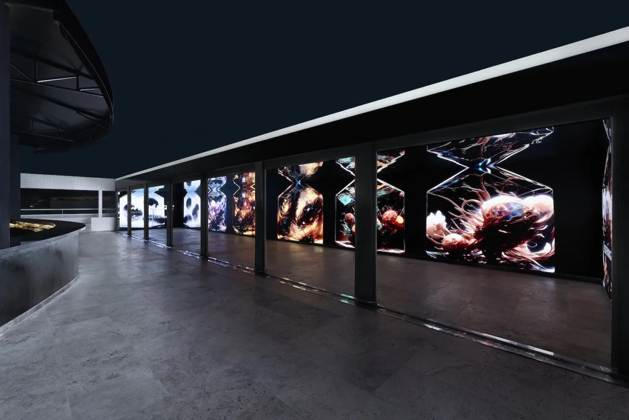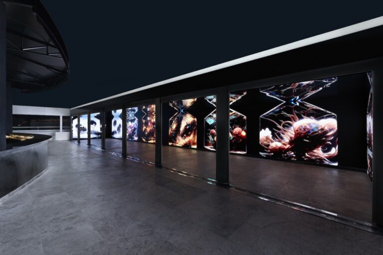 El corazón del proyecto se encuentra junto al Dom Pérignon Bar, en la azotea de Hï Ibiza, donde se ha instalado una galería digital inmersiva sin precedentes. Construida con paneles LED personalizados de W1 Curates y un techo de espejos que amplifica la experiencia, esta sala acoge obras de algunos de los creadores más influyentes del arte digital actual: Annibale Siconolfi, Ash Thorp, Beeple, Mad Dog Jones, Six N. Five y Shiro Fujioka, referentes de una estética que transita entre lo futurista, lo onírico y lo ciberpunk.
