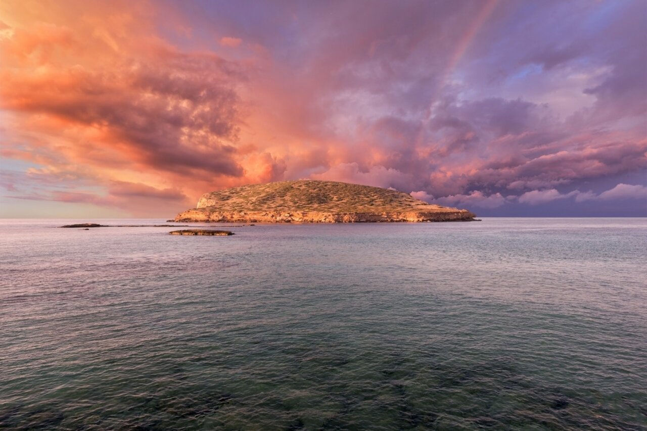 En el norte de la isla, Cala Benirrás ofrece una de las puestas de sol más emblemáticas. Famosa por los ritmos tribales de sus tamborileros, esta cala combina naturaleza, música y energía en una atmósfera única. A medida que el sol se esconde tras la roca del Cap Bernat, los tambores marcan el ritmo de un momento cargado de espiritualidad y belleza natural.