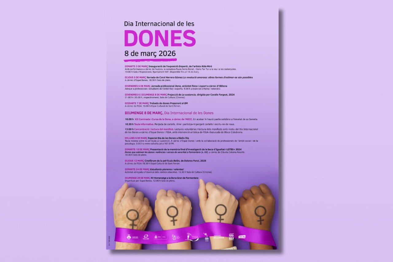 Formentera celebrará el 8 de Marzo con un programa de actividades que se desarrollará a lo largo de todo el mes. El Consell Insular ha presentado una agenda que combina cultura, reflexión, deporte y participación ciudadana, con propuestas que arrancarán el 3 de marzo y se prolongarán hasta el día 29.