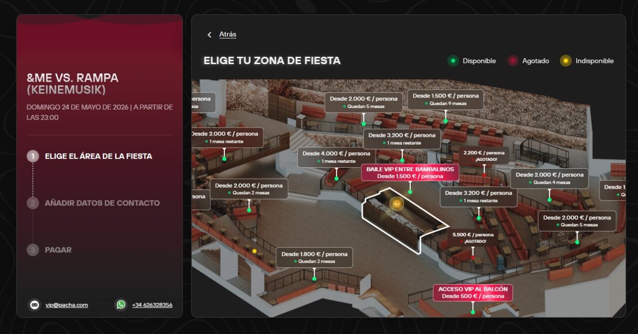 La mesa VIP más económica parte de 1.200 euros por persona, mientras que las opciones más exclusivas alcanzaron los 5.500 euros (ya agotada) y 4.000 euros por asistente. Traducido al formato completo, una de las mesas más caras del club pueden llegar a costar más 100.000 euros.