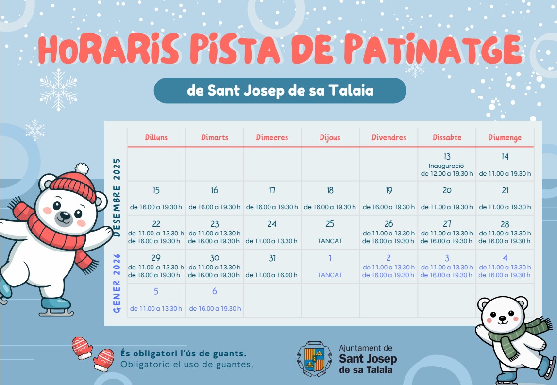 El Ayuntamiento de Sant Josep ha puesto en marcha su pista de patinaje sobre hielo navideña, incluida dentro de la programación de Navidad del municipio.
