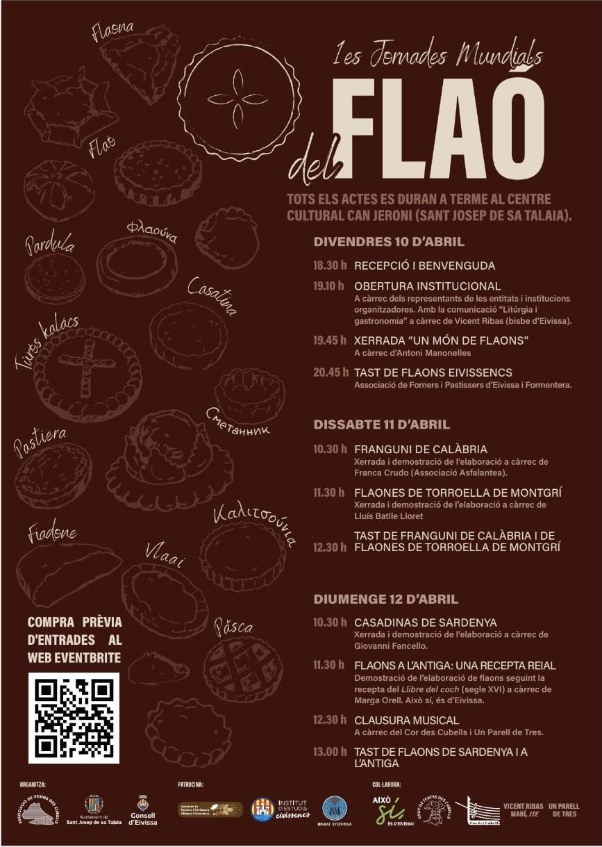 La jornada continuará a las 19.45 horas con la charla “Un món de flaons”, a cargo de Antoni Manonelles, y finalizará con una degustación de flaós ibicencos organizada por la Asociación de Forners i Pastissers d’Eivissa i Formentera, desde las 20.45 horas.