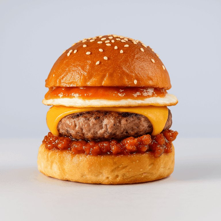 La hamburguesa se presenta como una propuesta atrevida, intensa e irresistible. Está elaborada con brioche casero recién horneado, ternera Angus de 170 gramos, mermelada de bacon artesanal, salsa de barbacoa casera con toque ahumado y huevo frito en su punto.